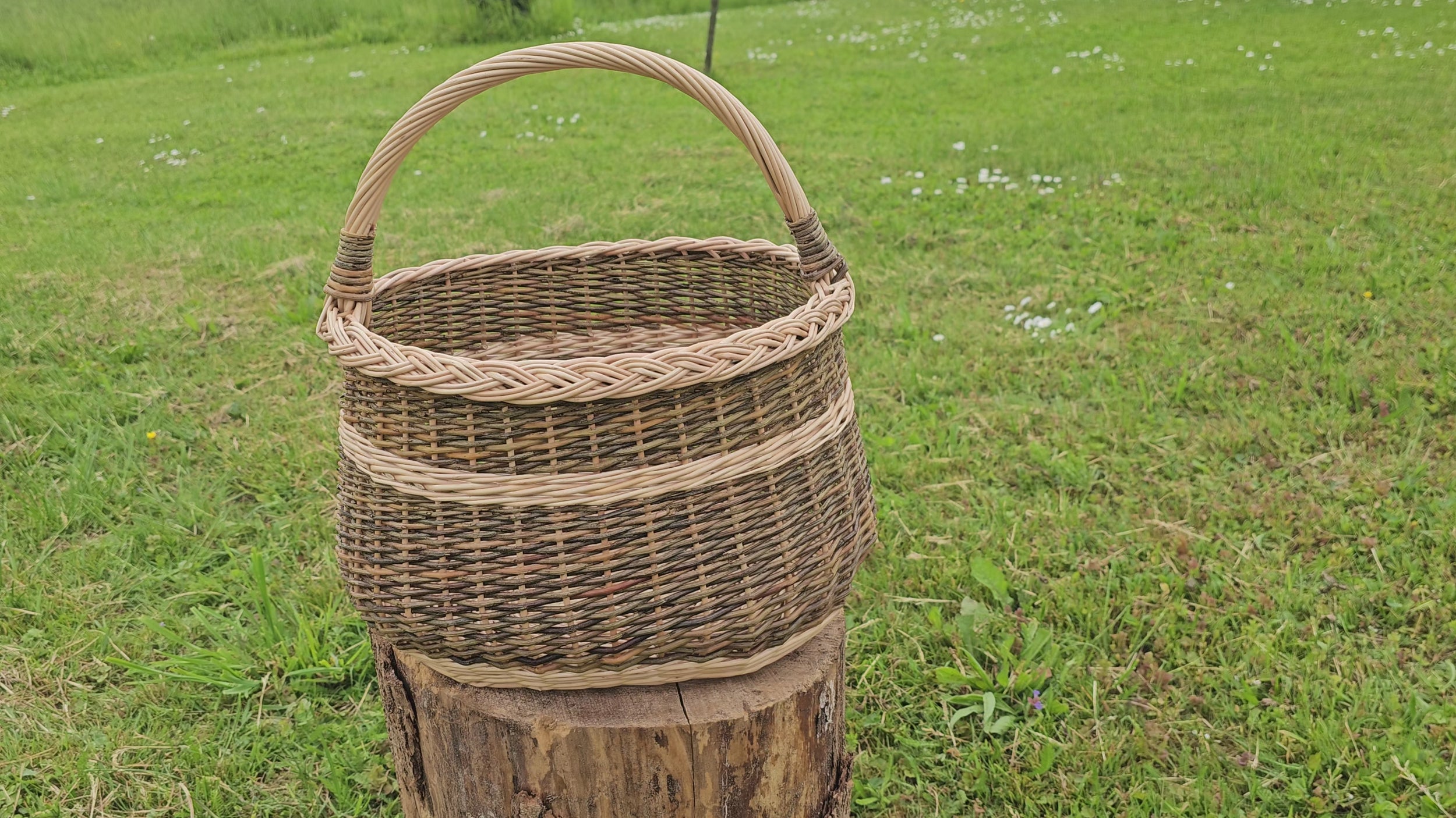 This handwoven wicker basket is a beautiful and functional piece for rustic decor, storage, or foraging – crafted from 100% natural willow in Lithuania.